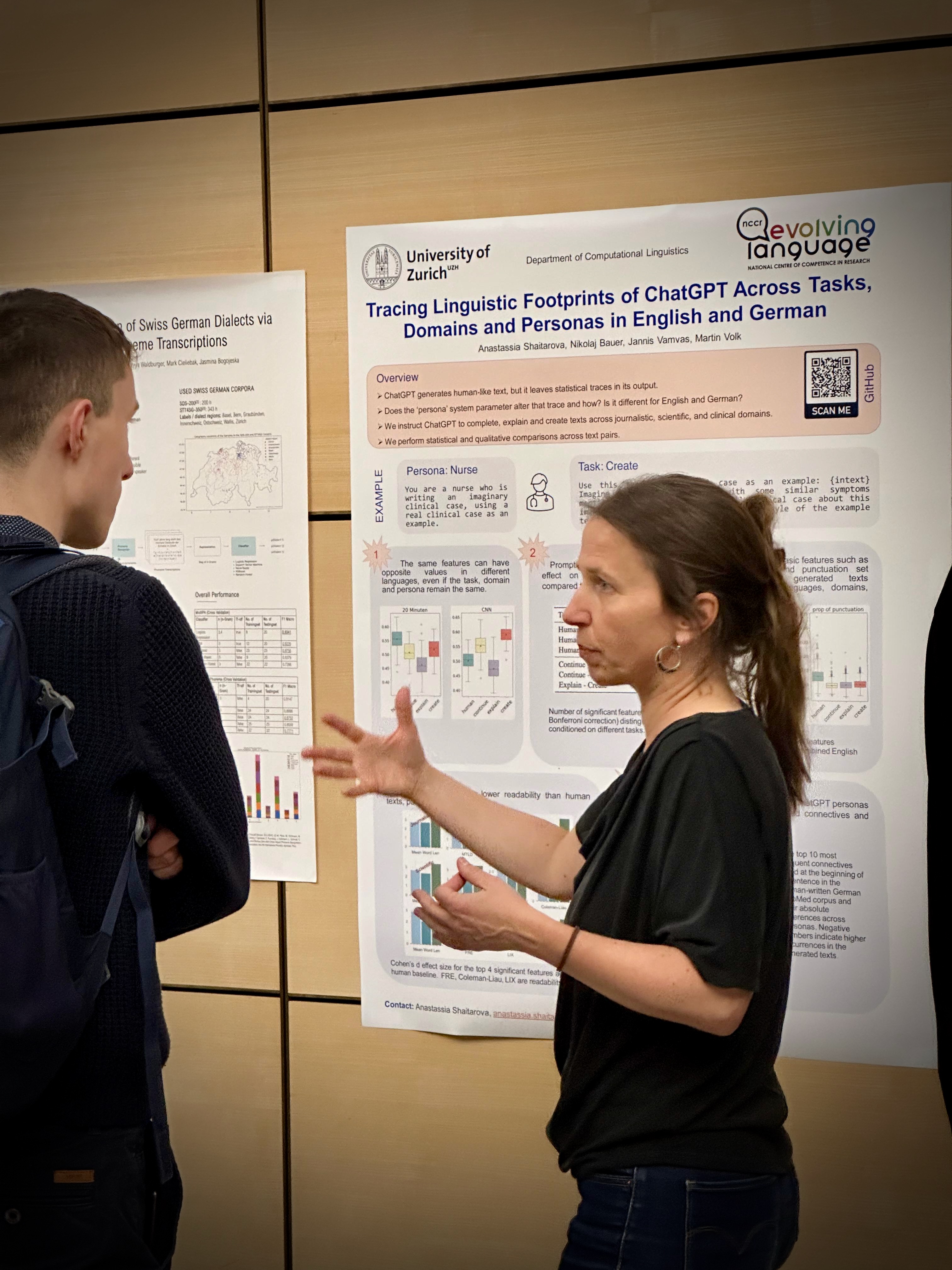 I presented findings from my paper on how prompting and domain context influence the linguistic features of ChatGPT-generated texts in English and German.